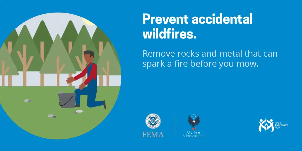 • Create a safety zone of up to 100 feet around your home. Remove pine needles and dry leaves from around your home. Keep woodpiles at least 30 feet from your home.